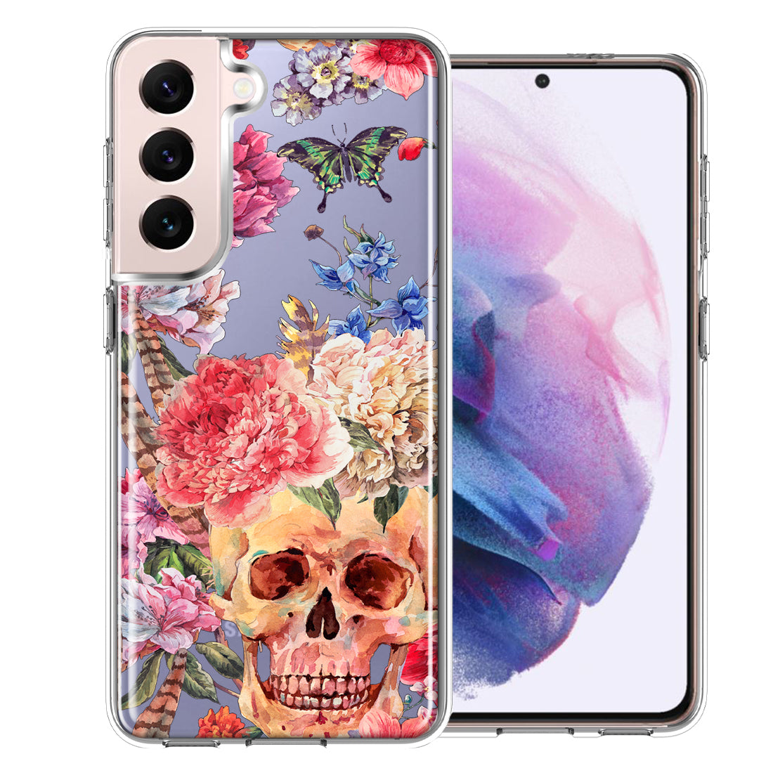 Case For Samsung Galaxy S22 Plus Indie Spring Peace Skull Feathers Floral Butterfly Flowers Phone Cover