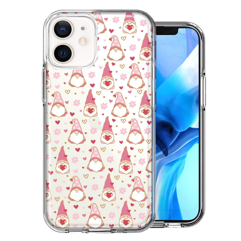 For Apple iPhone 11 Pink Blush Valentines Day Flower Hearts Gnome Characters Cute Double Layer Phone Case Cover