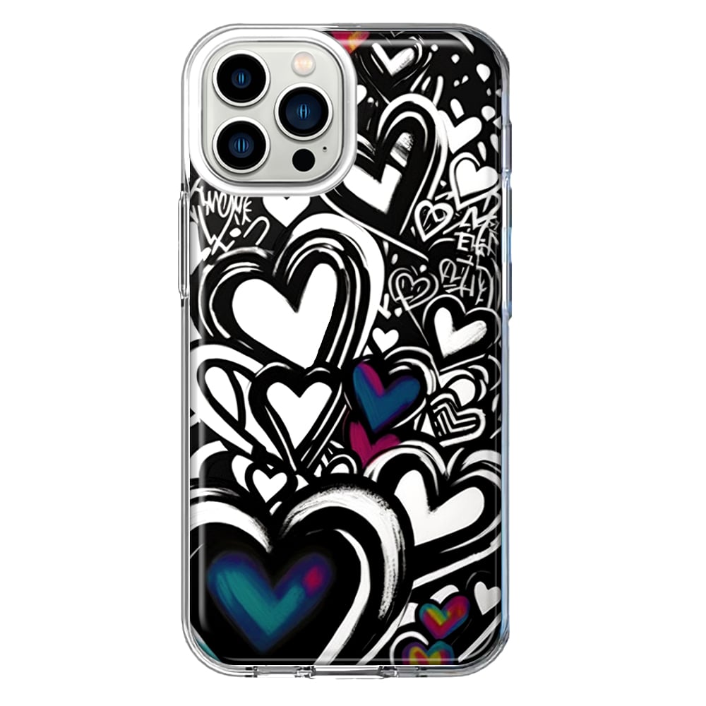 For Apple iPhone 11 Pro Max Black White Hearts Love Graffiti Design Hybrid Protective Phone Case Cover