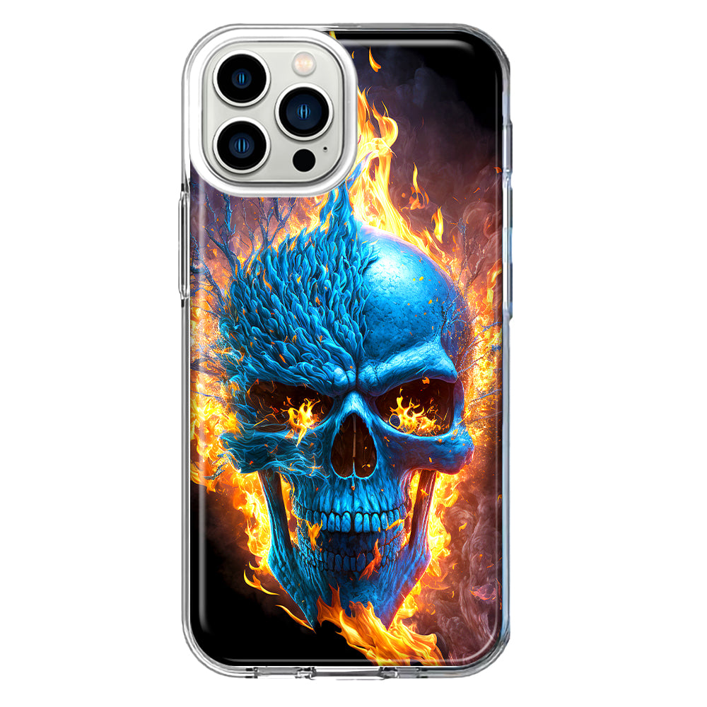 For Apple iPhone 11 Pro Max Blue Flaming Skull Burning Fire Double Layer Phone Case Cover
