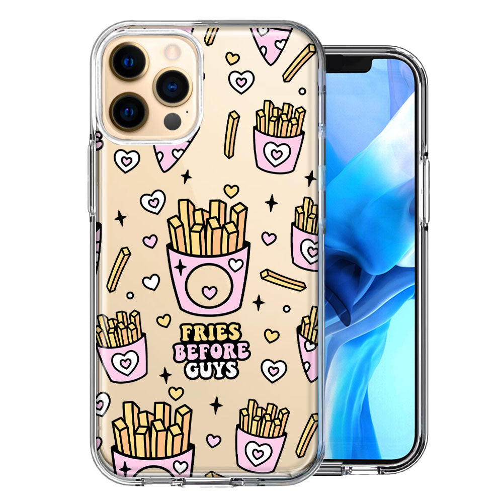 For Apple iPhone 11 Pro Max Cute Valentine Pink Love Hearts Fries Before Guys Double Layer Phone Case Cover