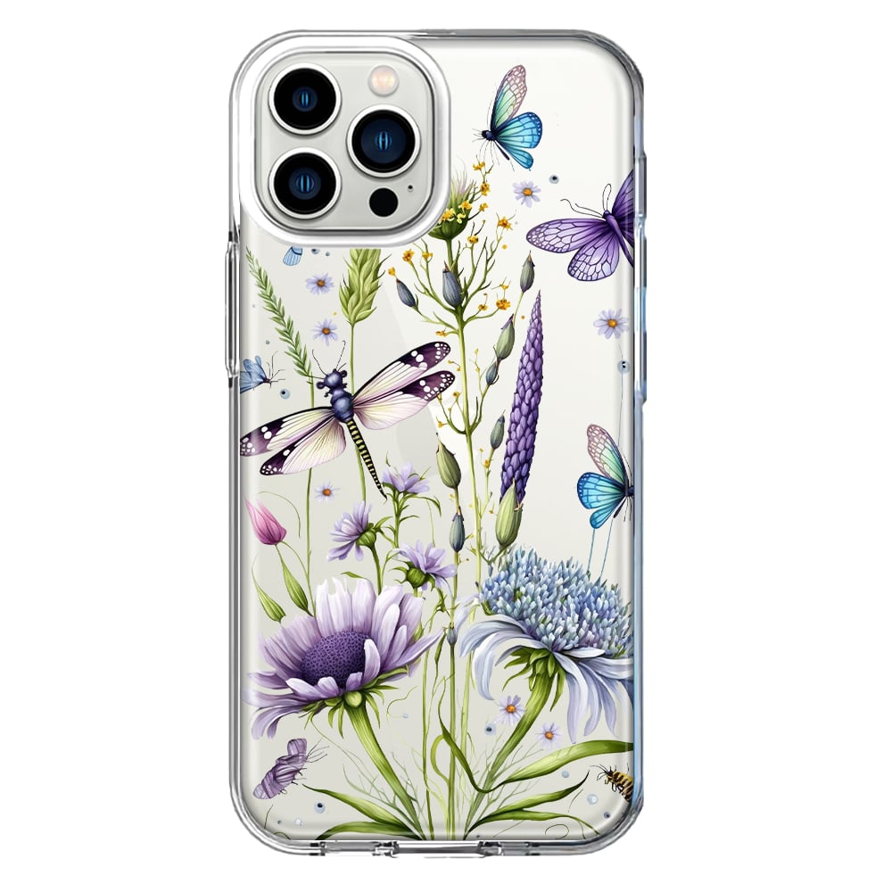 For Apple iPhone 11 Pro Max Lavender Dragonfly Butterflies Spring Flowers Design Hybrid Protective Phone Case Cover