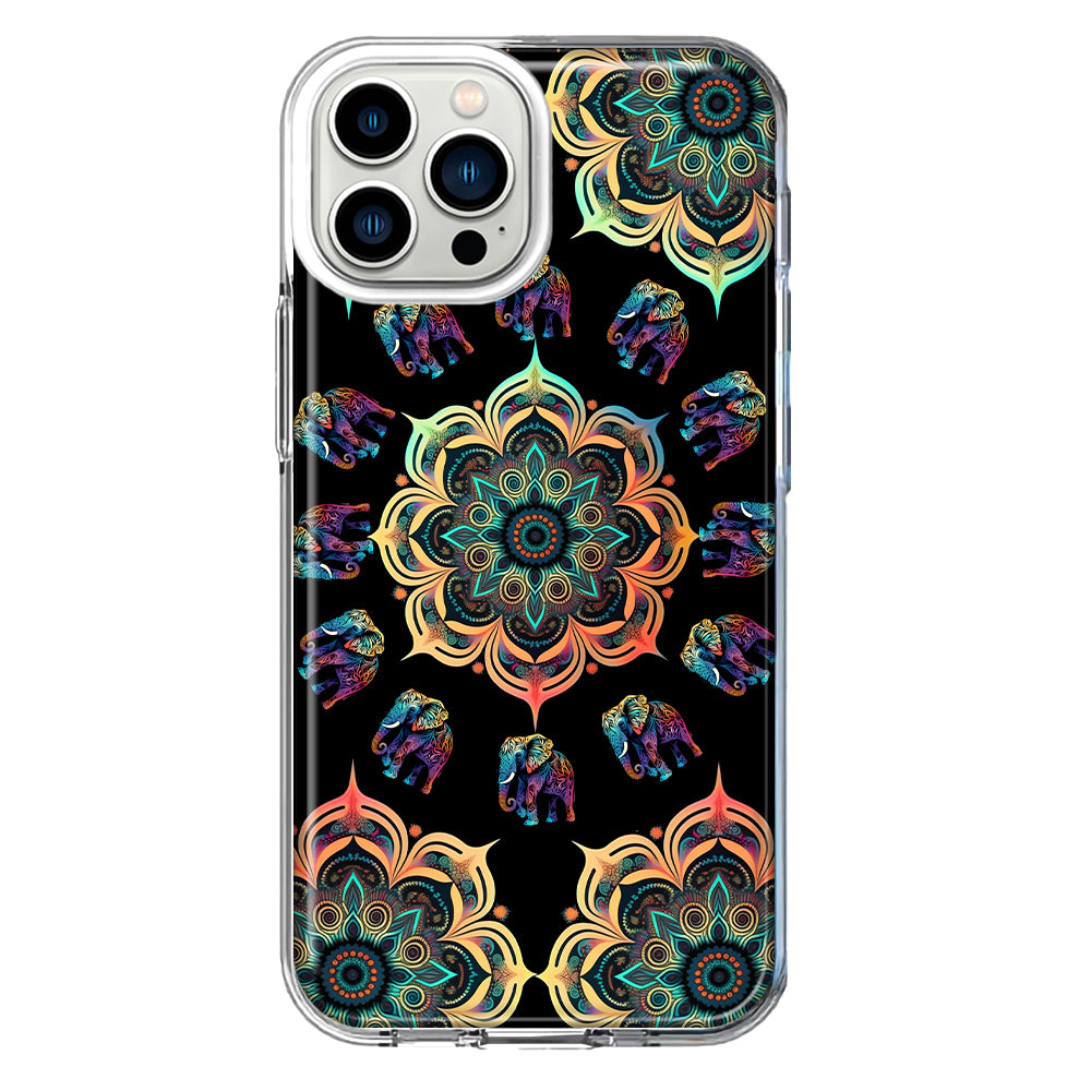 For Apple iPhone 11 Pro Max Mandala Geometry Abstract Elephant Pattern Design Hybrid Protective Phone Case Cover