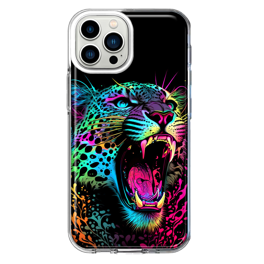 For Apple iPhone 11 Pro Neon Rainbow Glow Colorful Leopard Hybrid Protective Phone Case Cover