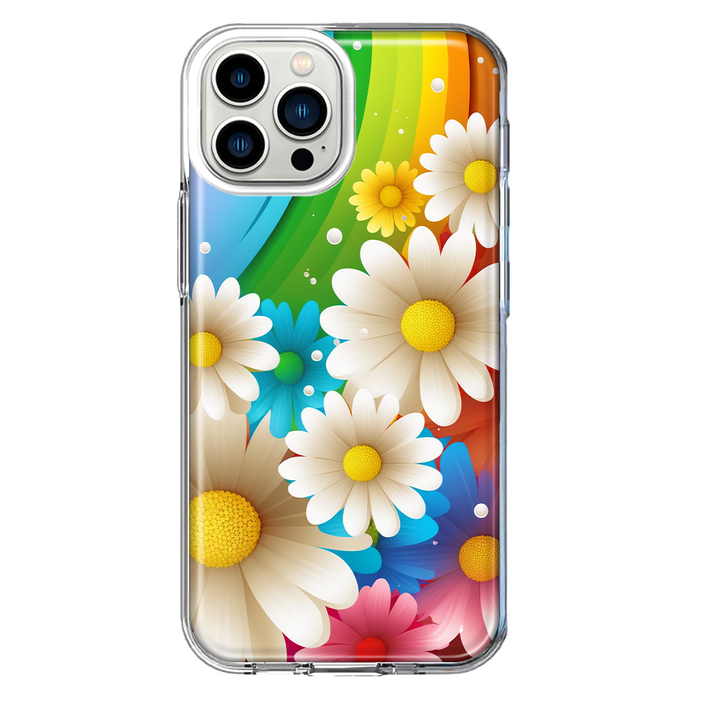 For Apple iPhone 12 Pro Max Colorful Rainbow Daisies Blue Pink White Green Double Layer Phone Case Cover