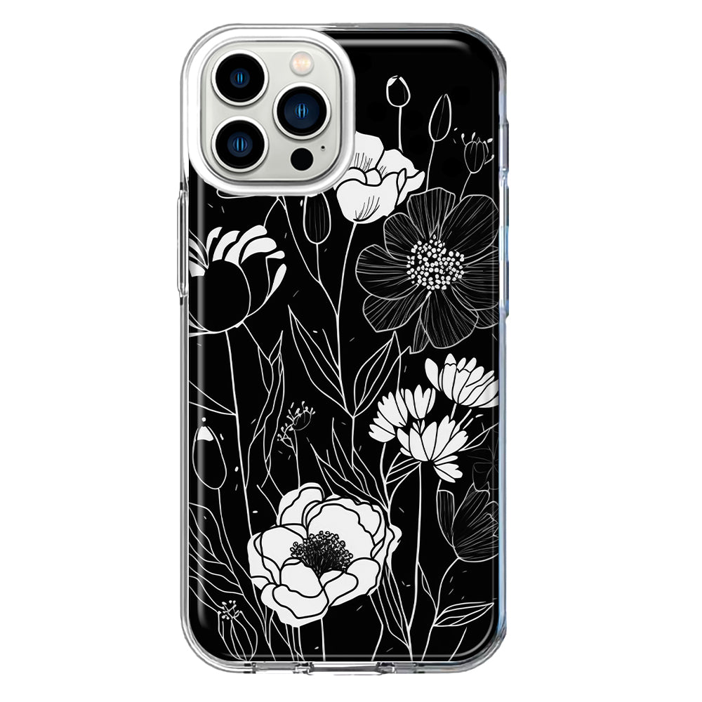 For Apple iPhone 12 Pro Max Line Drawing Art White Floral Flowers Hybrid Protective Phone Case Cover