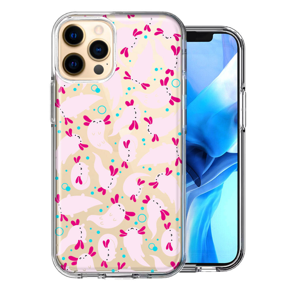 For Apple iPhone 12 Pro Max Pink Happy Swimming Axolotls Polka Dots Double Layer Phone Case Cover