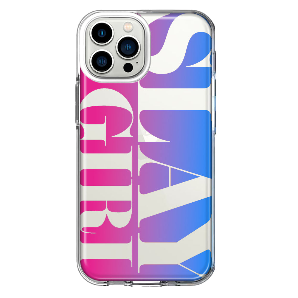 For Apple iPhone 12 Pro Pink Blue Clear Funny Text Quote Slay Girl Design Hybrid Protective Phone Case Cover