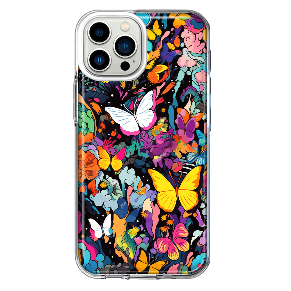 For Apple iPhone 12 Pro Psychedelic Trippy Butterflies Pop Art Design Hybrid Protective Phone Case Cover