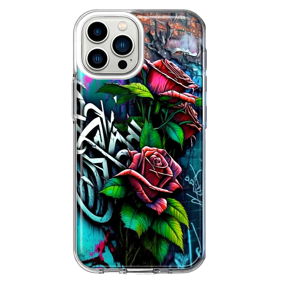 For Apple iPhone 12 Pro Red Roses Graffiti Painting Art Design Hybrid Protective Phone Case Cover