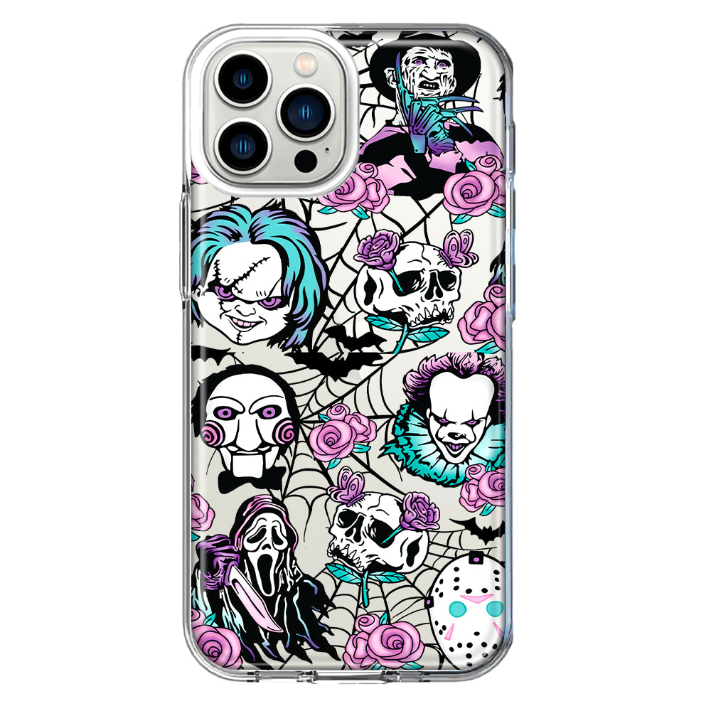 For Apple iPhone 12 Pro Roses Halloween Spooky Horror Characters Spider Web Design Hybrid Protective Phone Case Cover