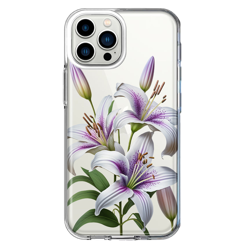 For Apple iPhone 12 Pro White Lavender Lily Purple Flowers Floral Hybrid Protective Phone Case Cover