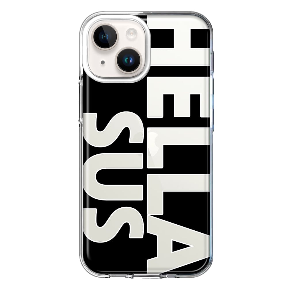 For Apple iPhone 13 Mini Black Clear Funny Text Quote Hella Sus Design Hybrid Protective Phone Case Cover