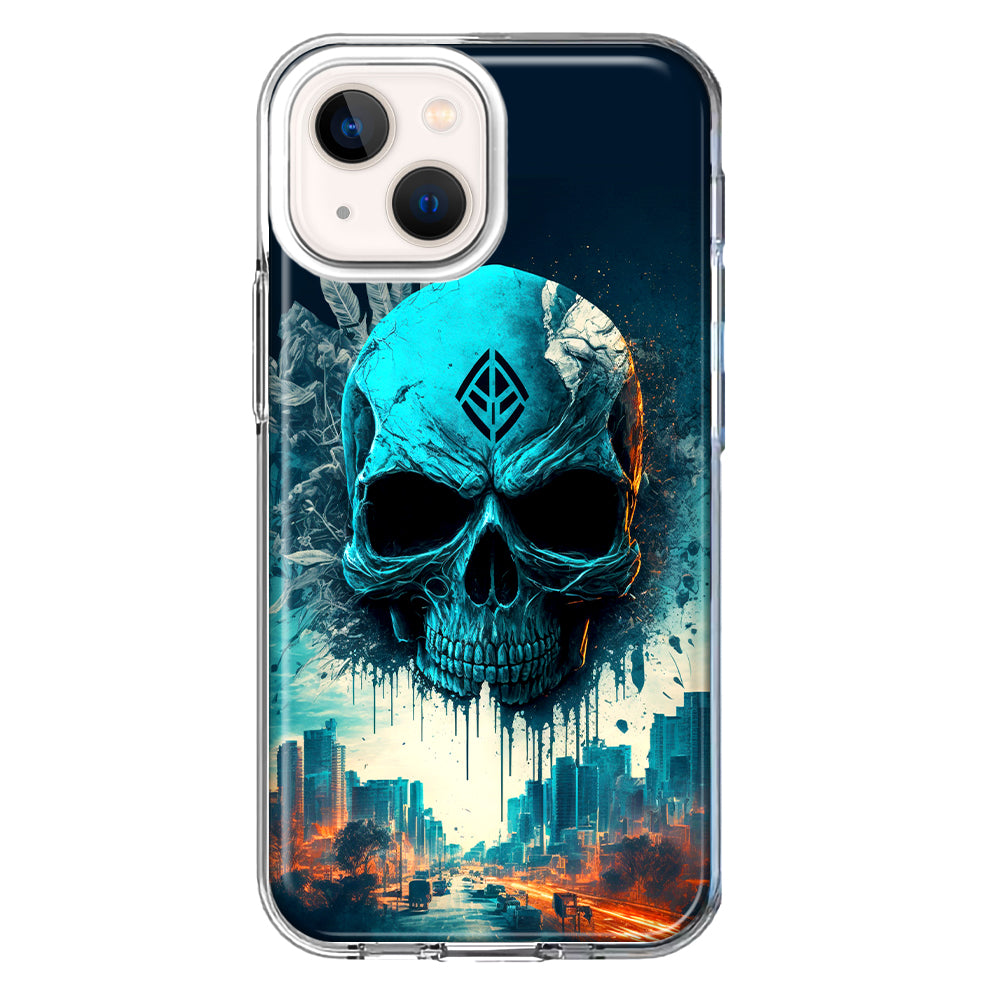 For Apple iPhone 13 Mini Blue Apocalypse Cyberpunk Skull Feather Double Layer Phone Case Cover
