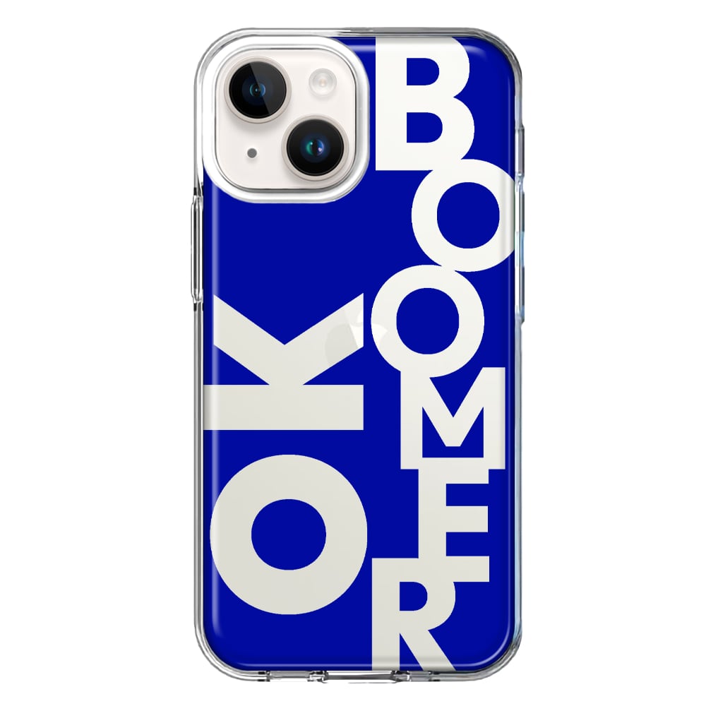 For Apple iPhone 13 Mini Blue Clear Funny Text Quote Ok Boomer Design Hybrid Protective Phone Case Cover