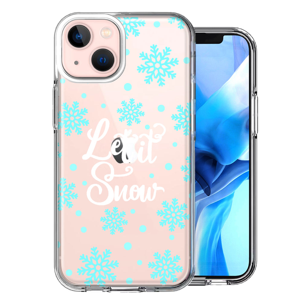 For Apple iPhone 13 Mini Christmas Holiday Let It Snow Winter Blue Snowflakes Design Double Layer Phone Case Cover