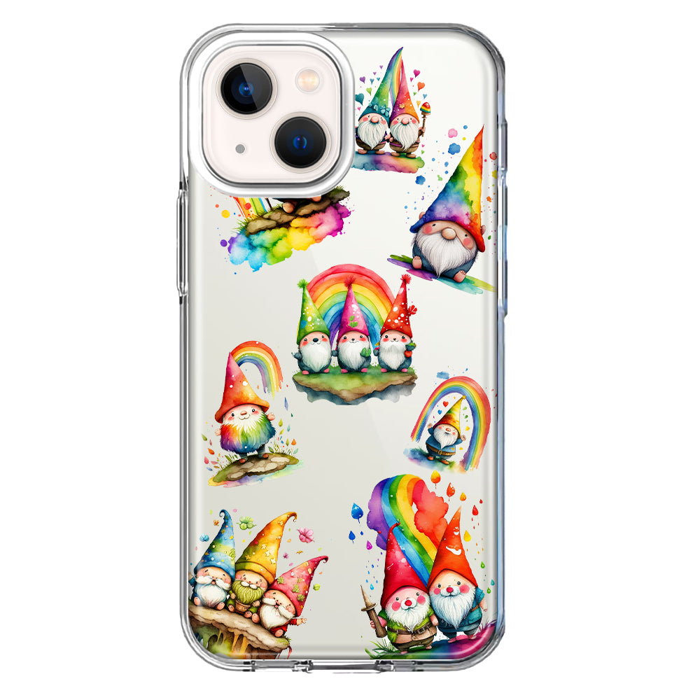 For Apple iPhone 13 Mini Colorful Neon Glow Rainbow Gnomes Painting Hybrid Protective Phone Case Cover
