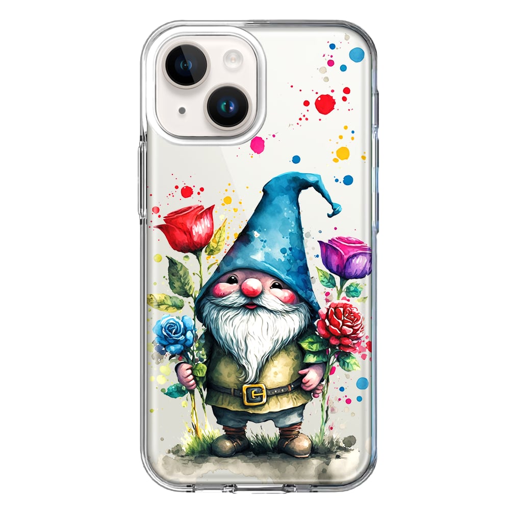 For Apple iPhone 13 Mini Gnome Red Purple Blue Roses Garden Design Hybrid Protective Phone Case Cover