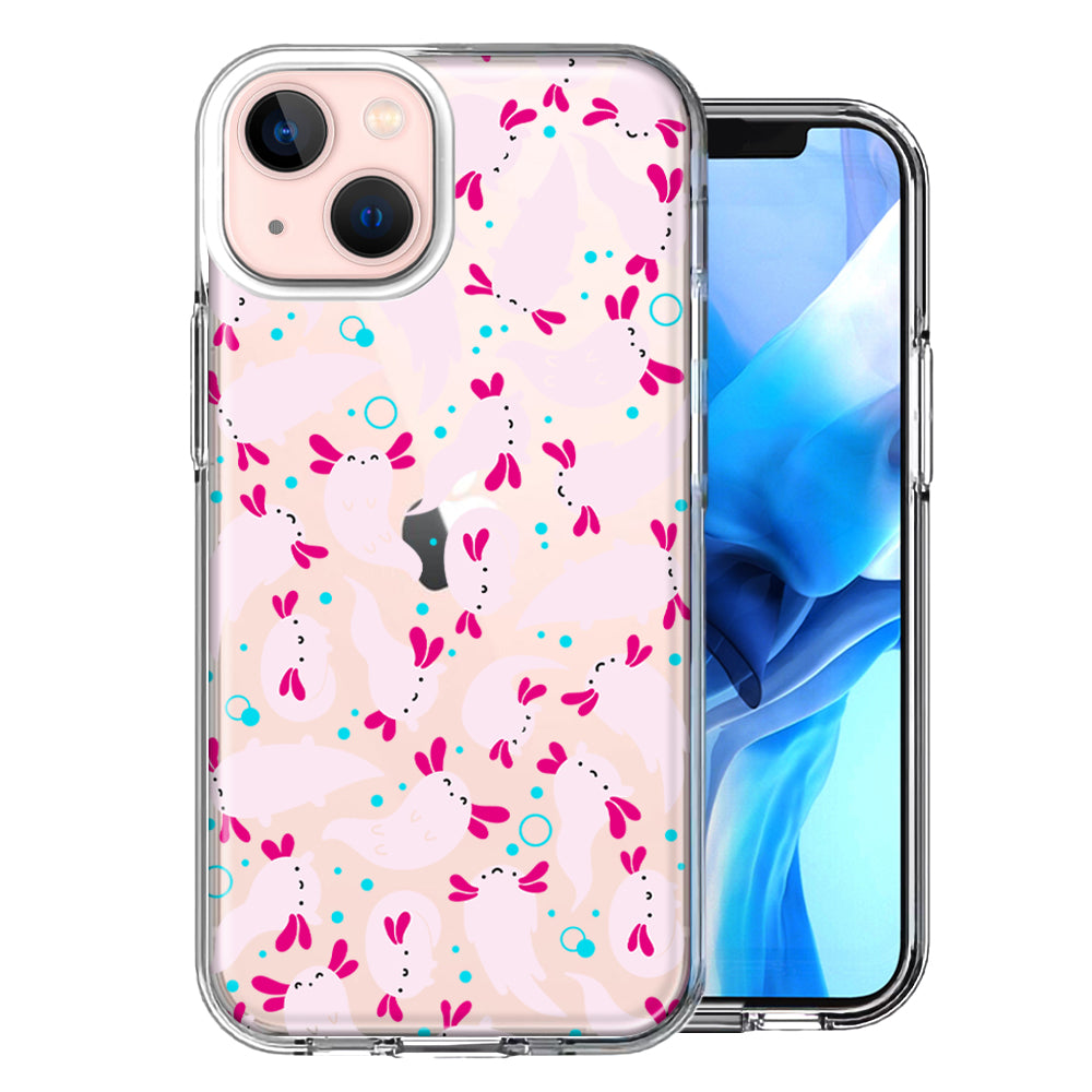 For Apple iPhone 13 Mini Pink Happy Swimming Axolotls Polka Dots Double Layer Phone Case Cover