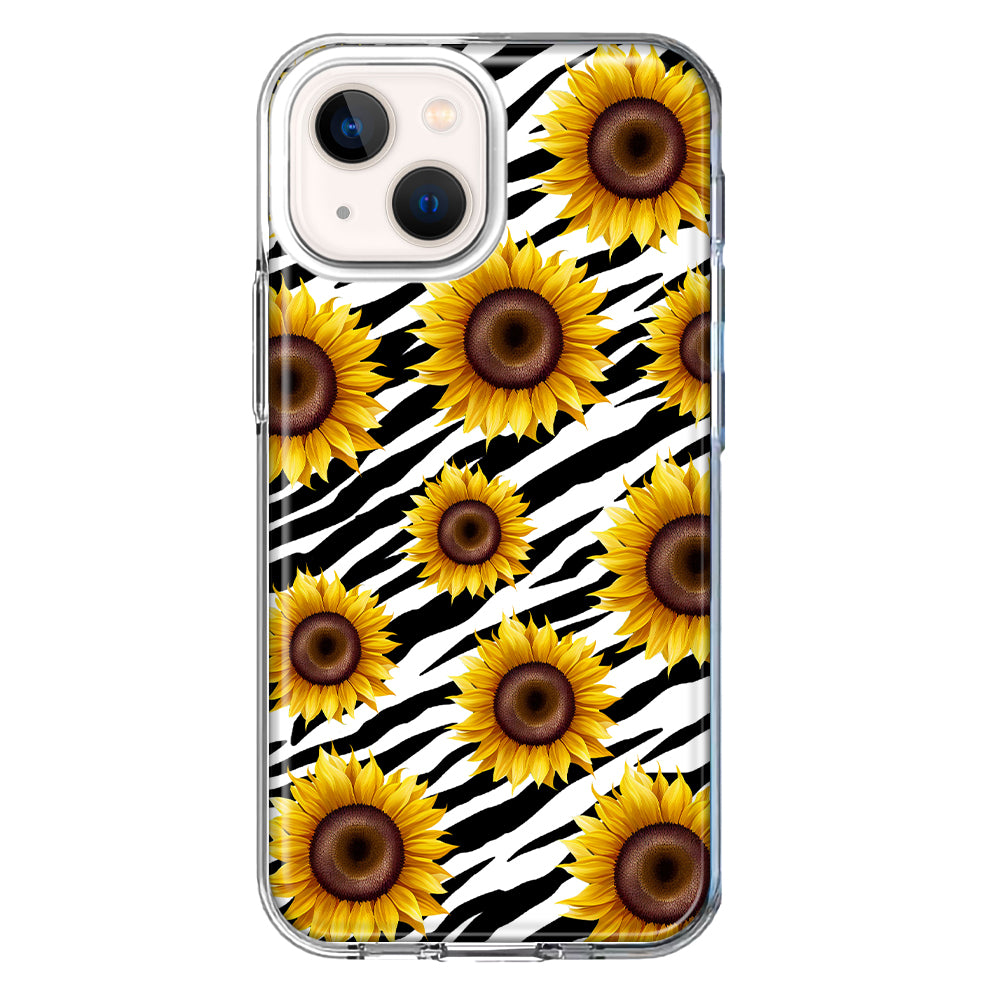 For Apple iPhone 13 Mini White Zebra Sunflowers Polkadots Double Layer Phone Case Cover