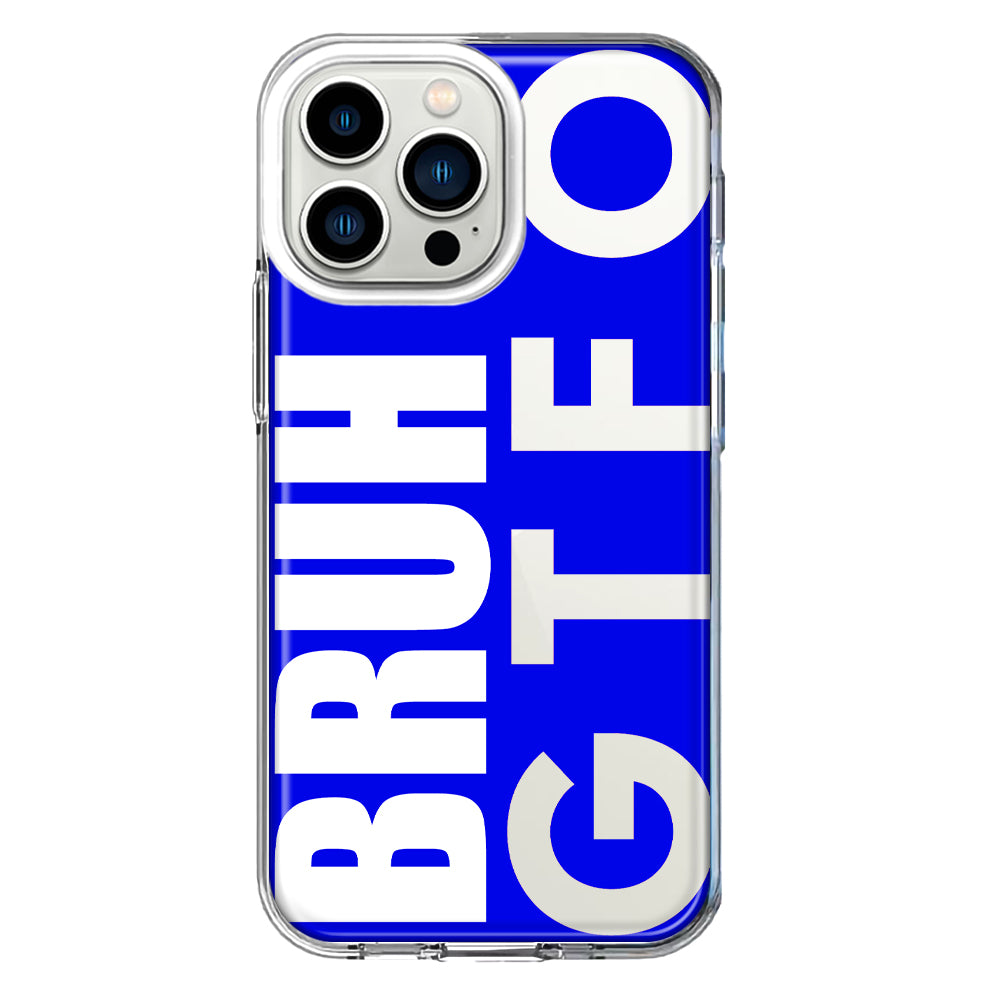 For Apple iPhone 13 Pro Blue Clear Funny Text Quote Bruh GTFO Design Hybrid Protective Phone Case Cover