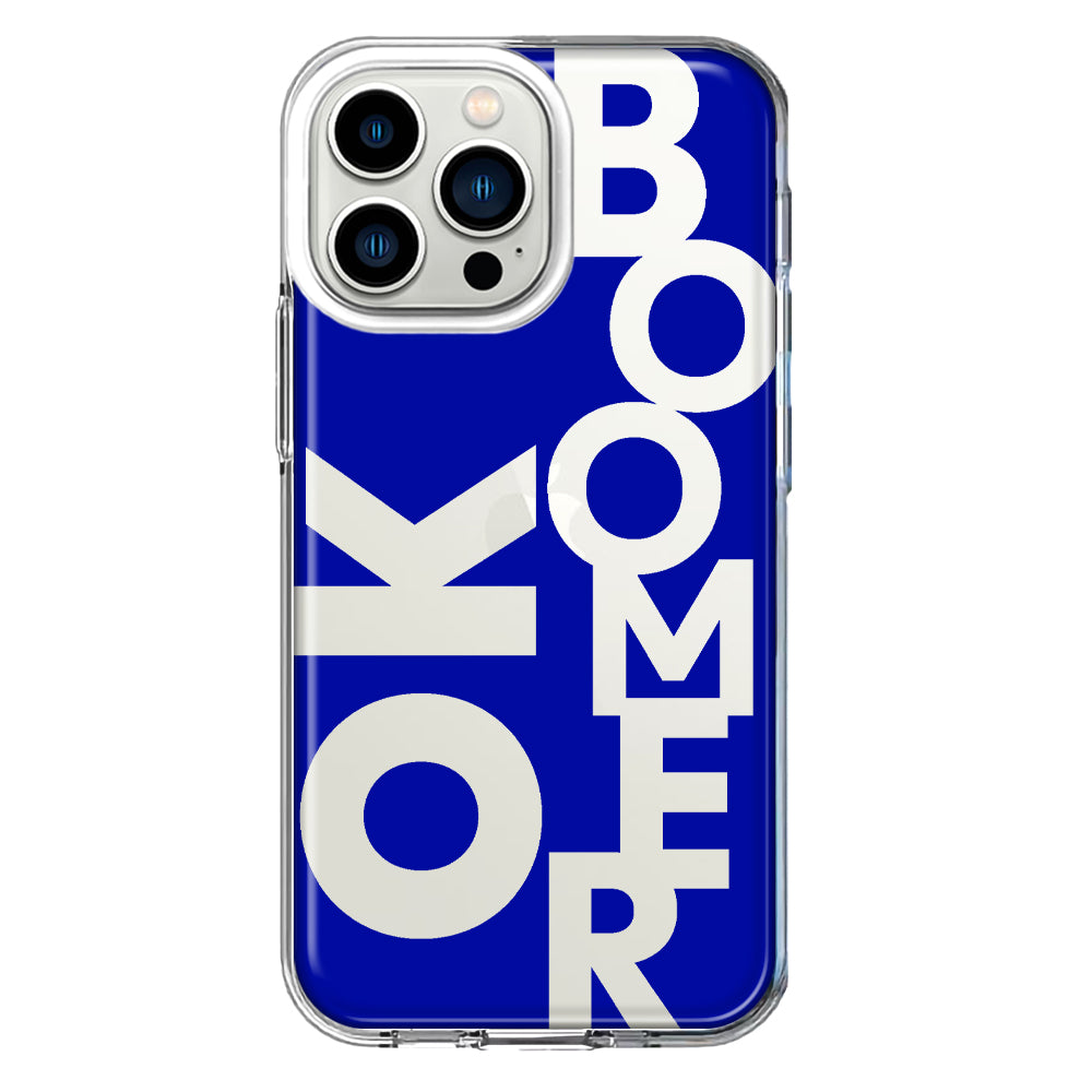 For Apple iPhone 13 Pro Blue Clear Funny Text Quote Ok Boomer Design Hybrid Protective Phone Case Cover