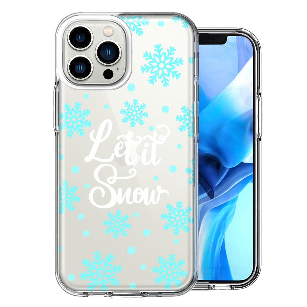 For Apple iPhone 14 Pro Max Christmas Holiday Let It Snow Winter Blue Snowflakes Design Double Layer Phone Case Cover