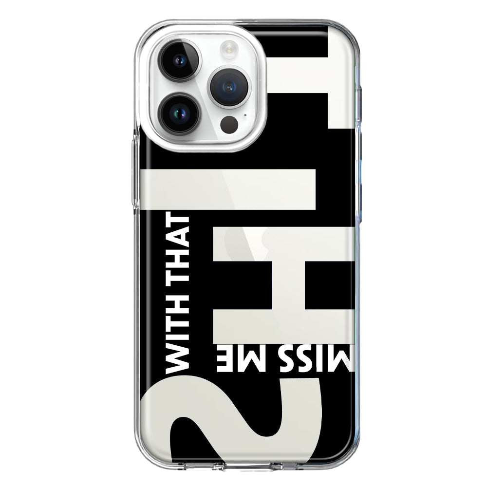 For Apple iPhone 15 Pro Black Clear Funny Text Quote Miss Me With That Shit Design Hybrid Protective Phone Case Cover