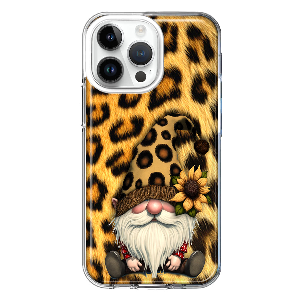 For Apple iPhone 15 Pro Gnome Sunflower Leopard Design Hybrid Protective Phone Case Cover