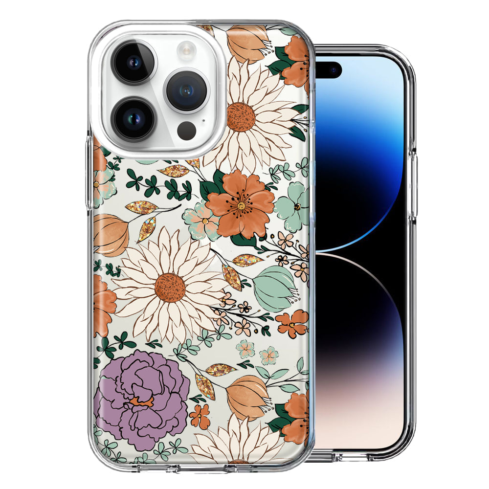 For Apple iPhone 15 Pro Max Feminine Classy Flowers Fall Toned Floral Wallpaper Style Double Layer Phone Case Cover