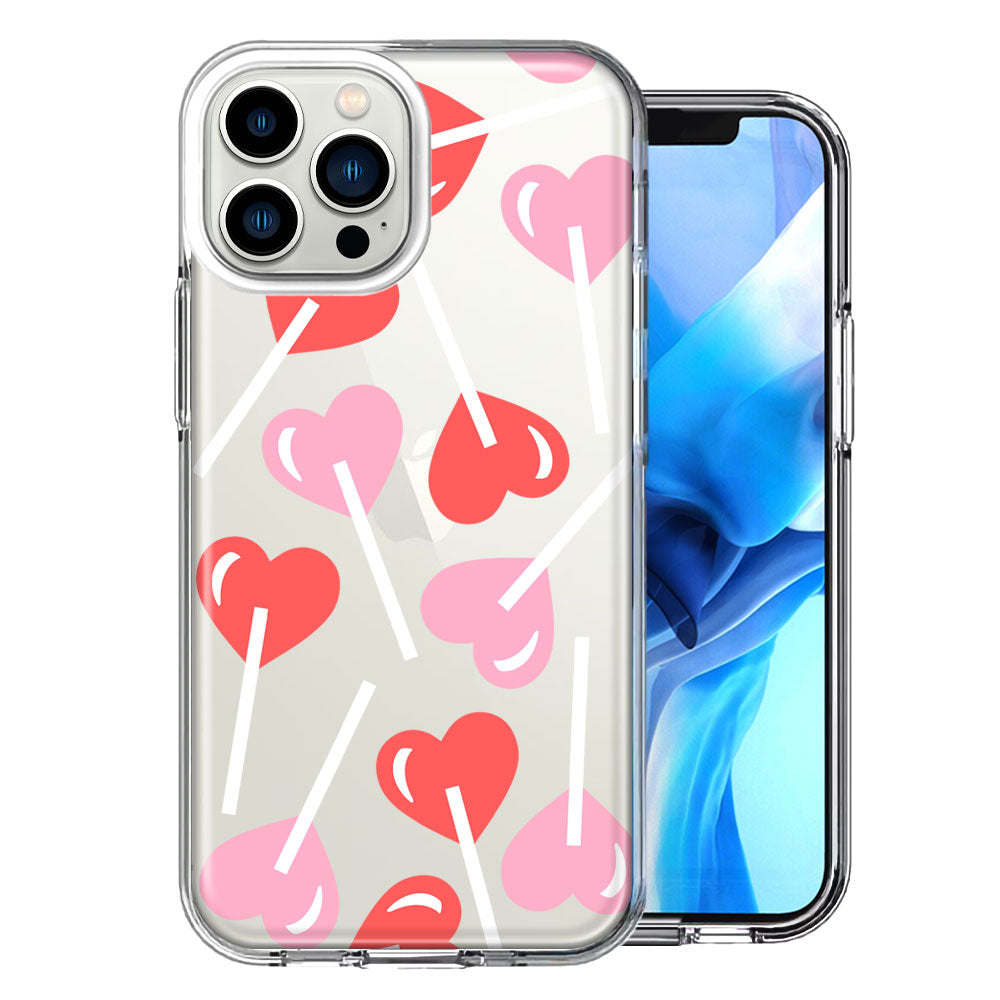 For Apple iPhone 15 Pro Max Heart Suckers Lollipop Valentines Day Candy Lovers Double Layer Phone Case Cover
