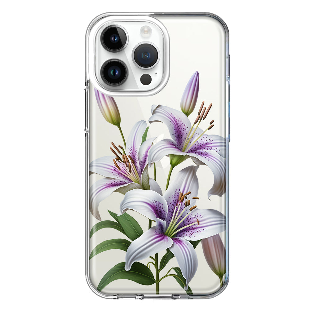 For Apple iPhone 15 Pro Max White Lavender Lily Purple Flowers Floral Hybrid Protective Phone Case Cover