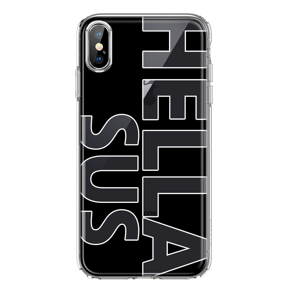 For Apple iPhone XS Max Black Clear Funny Text Quote Hella Sus Design Hybrid Protective Phone Case Cover