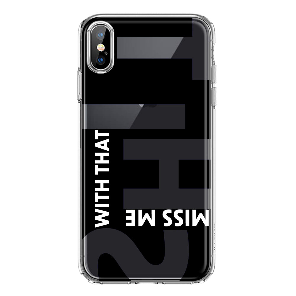 For Apple iPhone XS Max Black Clear Funny Text Quote Miss Me With That Shit Design Hybrid Protective Phone Case Cover
