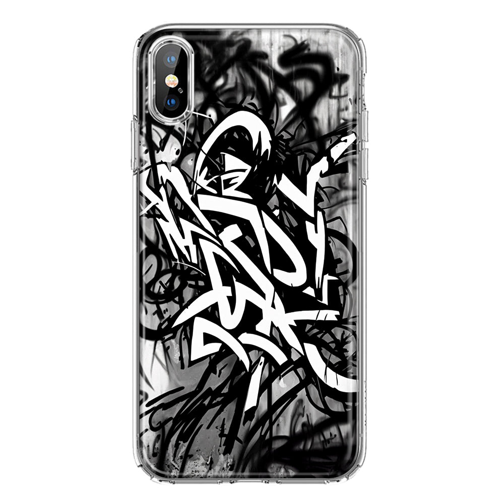 For Apple iPhone XS Max Black White Urban Graffiti Design Hybrid Protective Phone Case Cover
