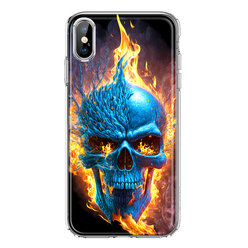 For Apple iPhone XS Max Blue Flaming Skull Burning Fire Double Layer Phone Case Cover