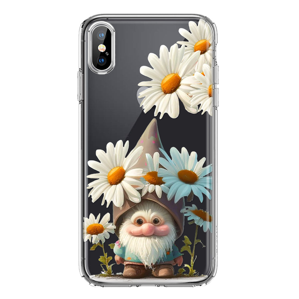 For Apple iPhone XS Max Cute Gnome White Daisy Flowers Floral Design Hybrid Protective Phone Case Cover