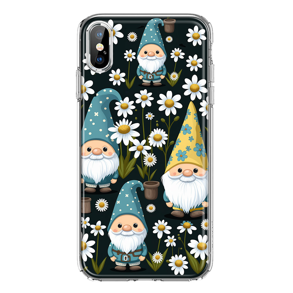 For Apple iPhone XS Max Cute White Daisies Gnomes Flowers Floral Double Layer Phone Case Cover
