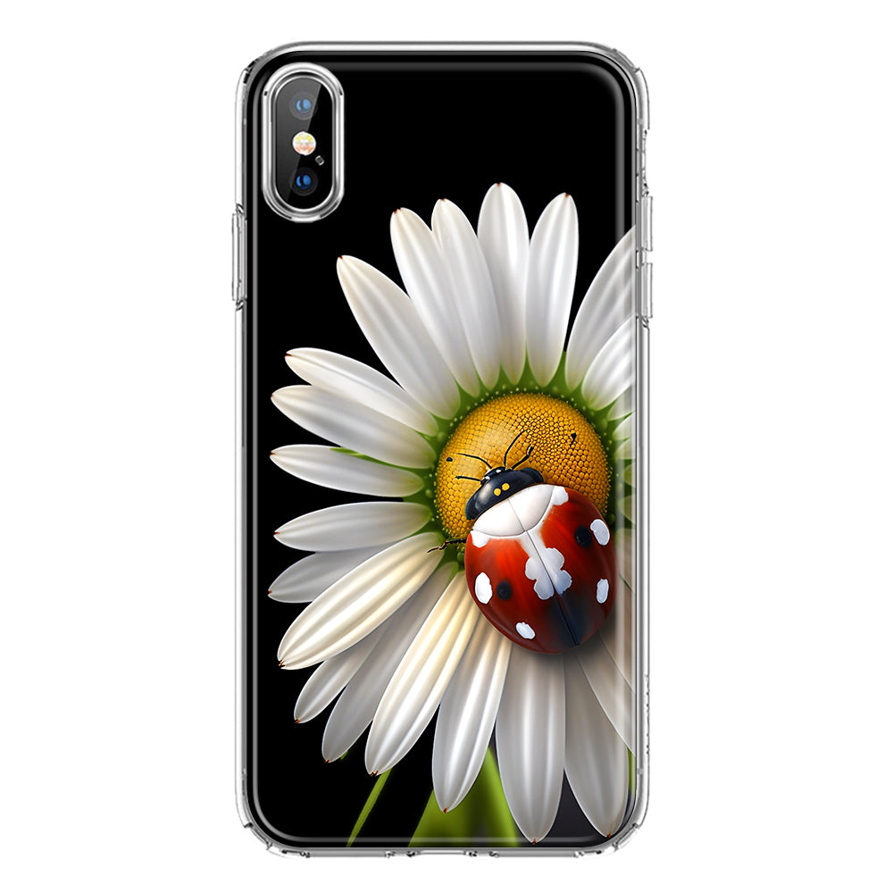 For Apple iPhone XS Max Cute White Daisy Red Ladybug Double Layer Phone Case Cover