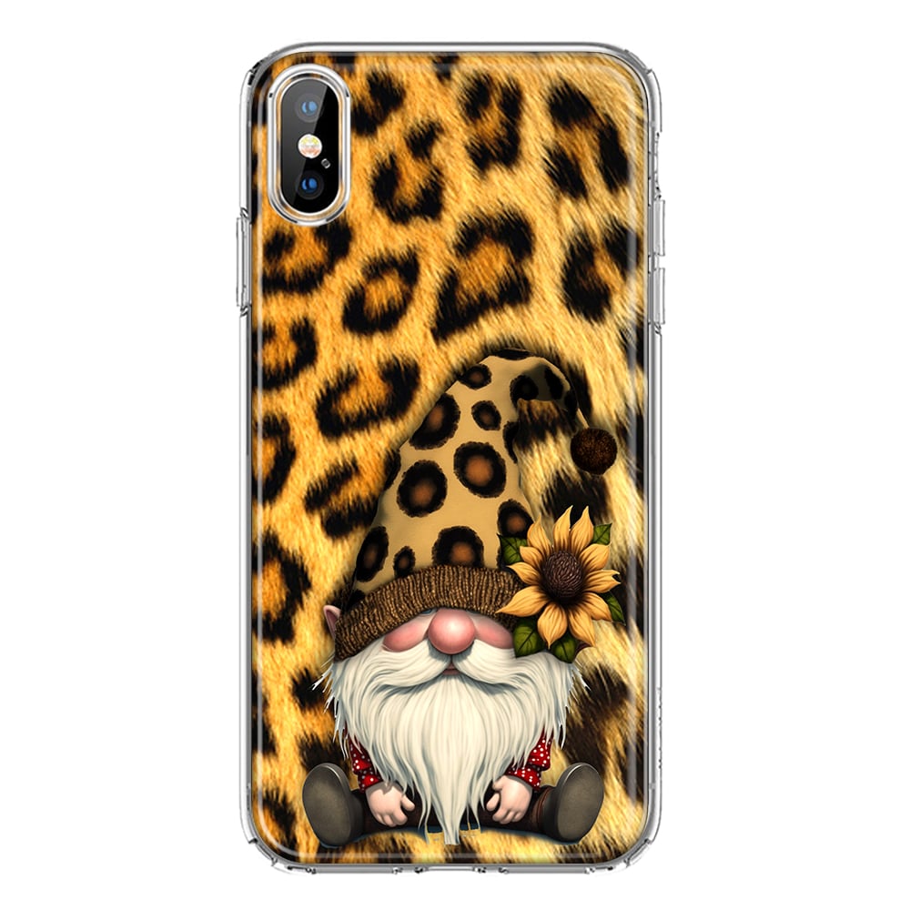 For Apple iPhone XS Max Gnome Sunflower Leopard Design Hybrid Protective Phone Case Cover