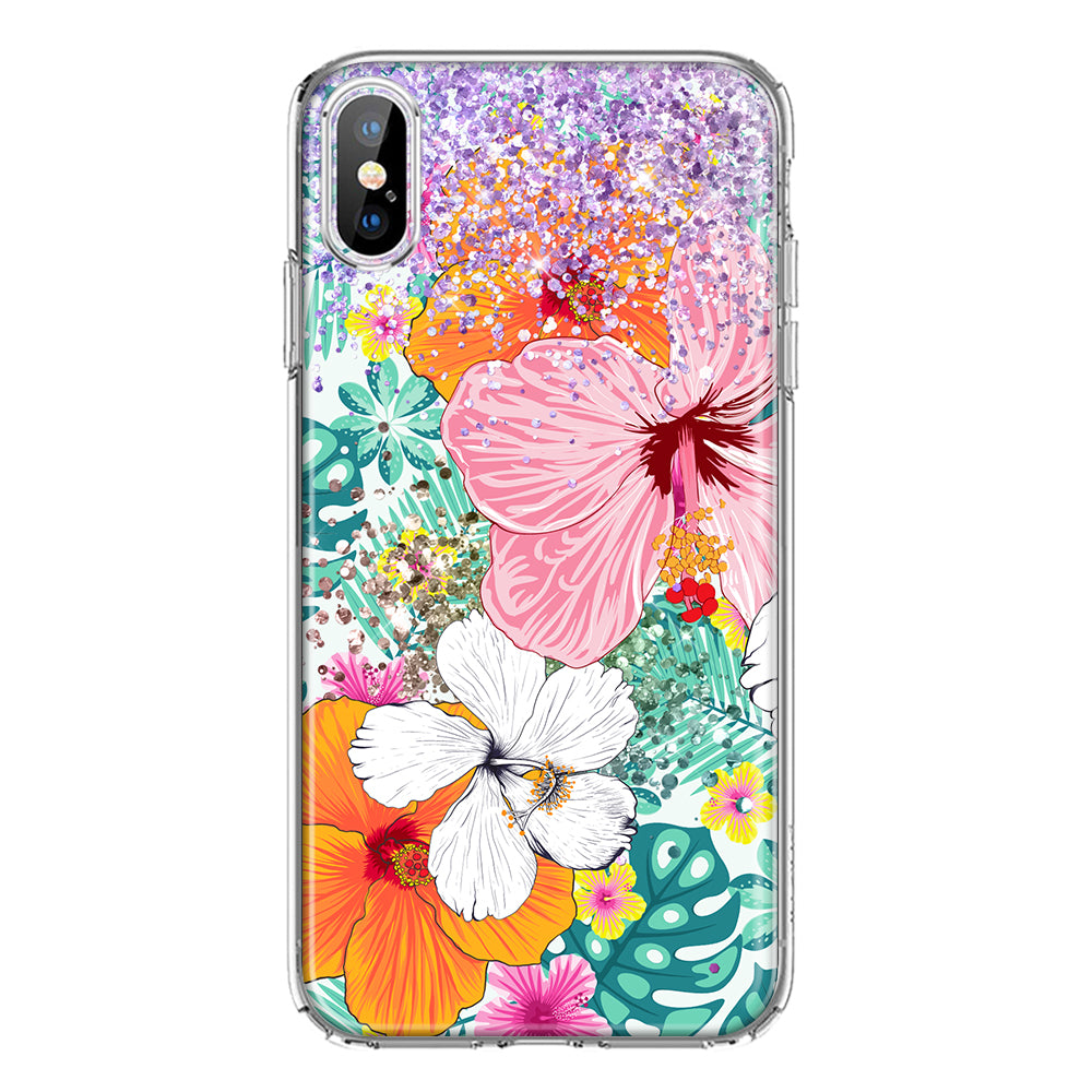 For Apple iPhone XS Max Hawaiian Vibes Hibiscus Flowers Monstera Vacation Summer Design Hybrid Protective Phone Case Cover