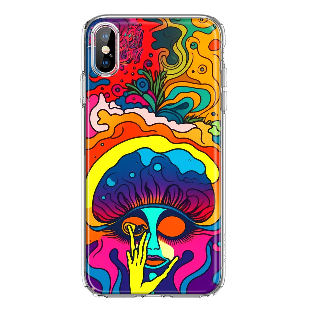 For Apple iPhone XS Max Neon Rainbow Psychedelic Trippy Hippie Big Brain Design Hybrid Protective Phone Case Cover