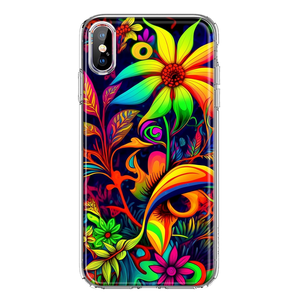 For Apple iPhone XS Max Neon Rainbow Psychedelic Trippy Hippie Daisy Flowers Design Hybrid Protective Phone Case Cover