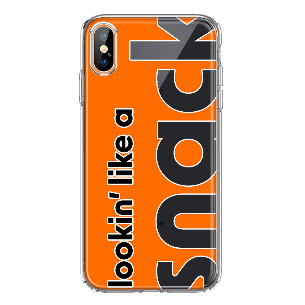 For Apple iPhone XS Max Orange Clear Funny Text Quote Snack Design Hybrid Protective Phone Case Cover