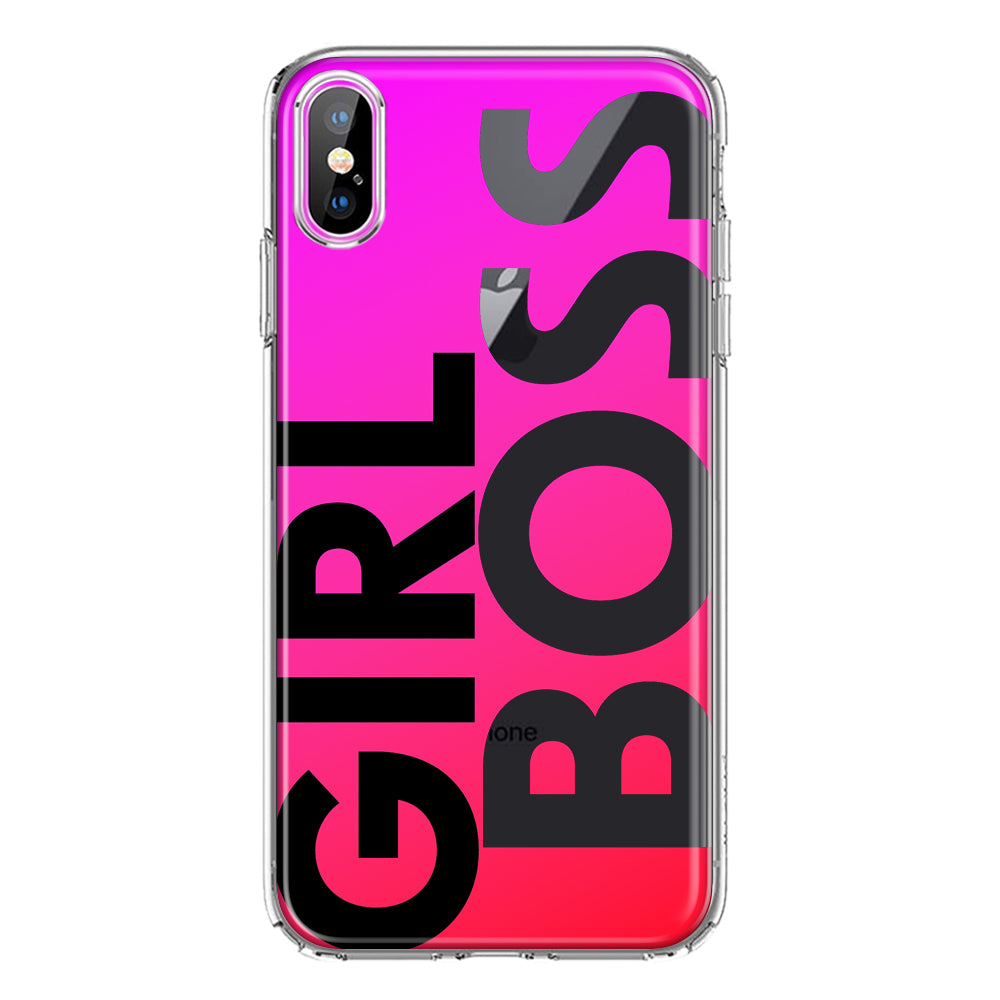 For Apple iPhone XS Max Pink Clear Funny Text Quote Girl Boss Design Hybrid Protective Phone Case Cover