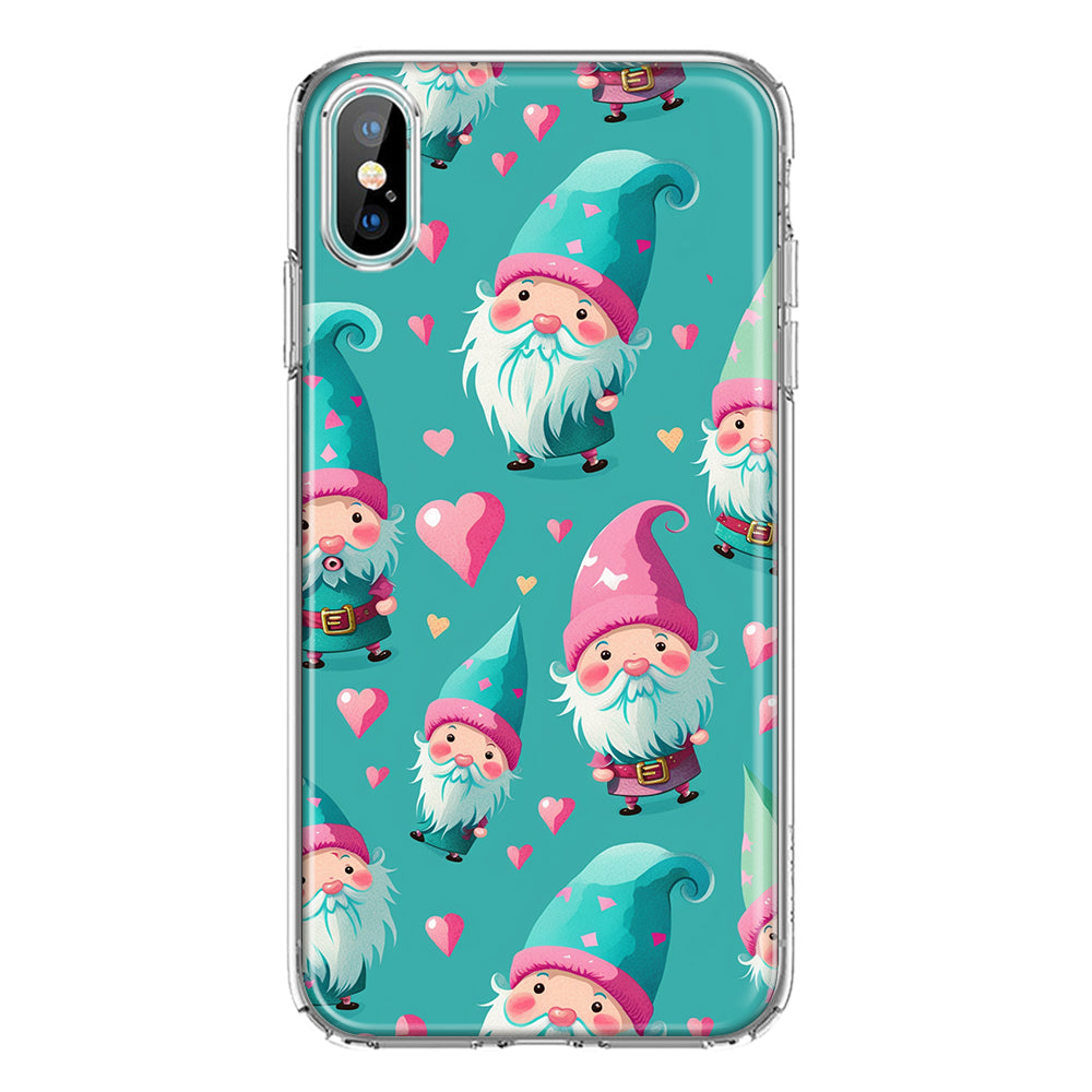 For Apple iPhone XS Max Turquoise Pink Hearts Gnomes Design Hybrid Protective Phone Case Cover