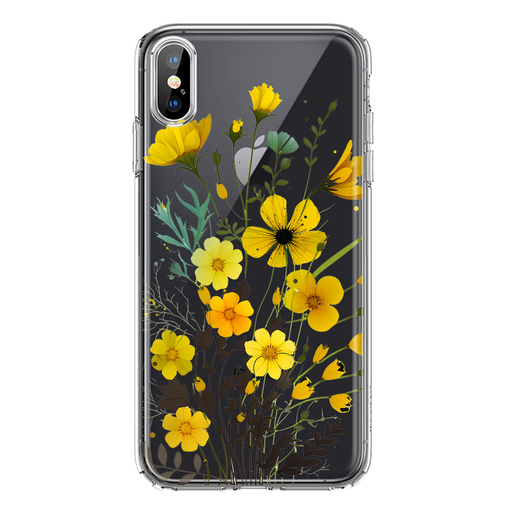 For Apple iPhone XS Max Yellow Summer Flowers Floral Hybrid Protective Phone Case Cover
