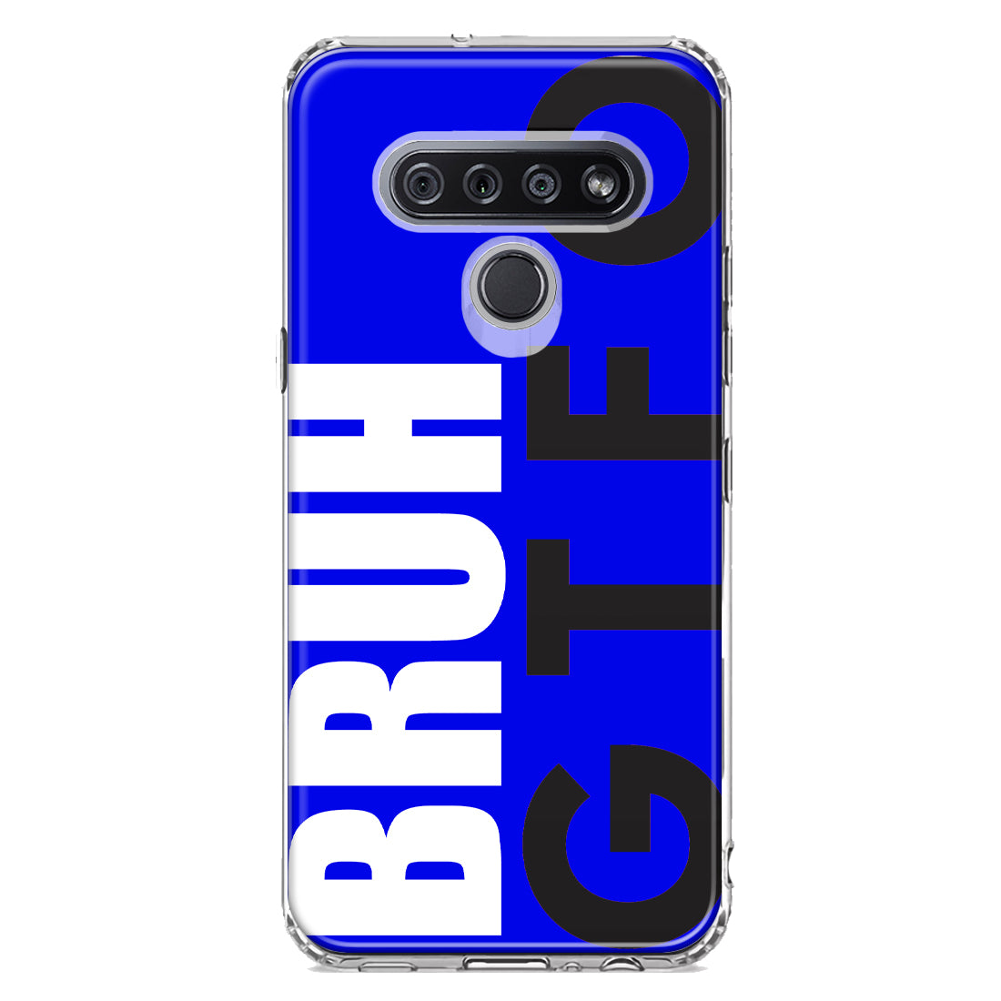 For LG K51 Blue Clear Funny Text Quote Bruh GTFO Design Hybrid Protective Phone Case Cover