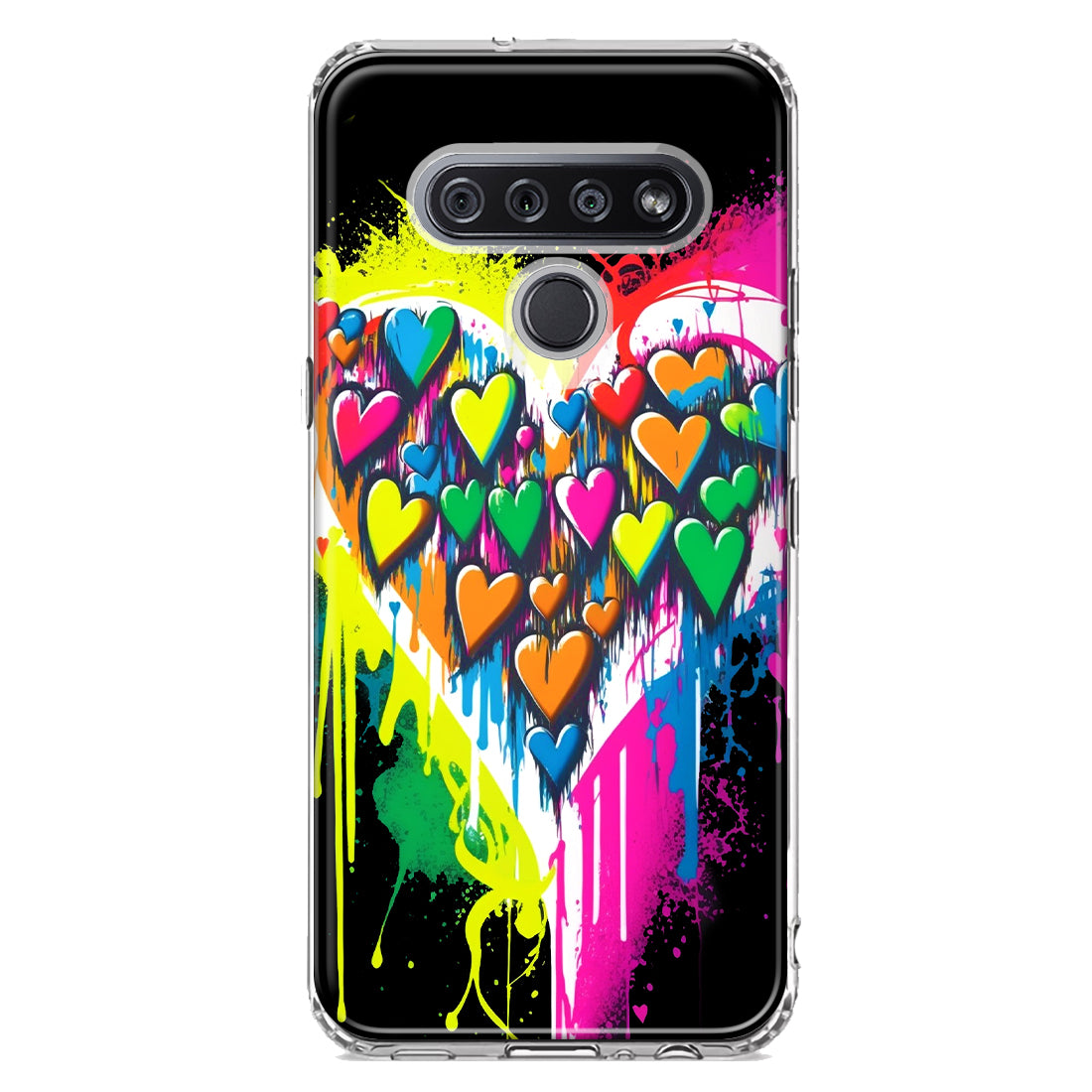 For LG K51 Colorful Rainbow Hearts Love Graffiti Painting Design Hybrid Protective Phone Case Cover