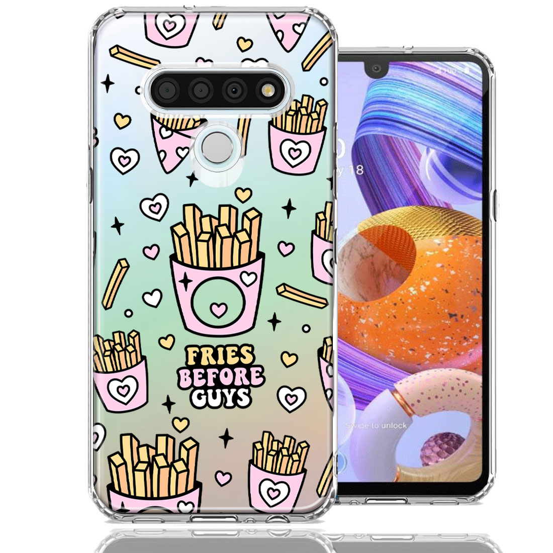 For LG K51 Cute Valentine Pink Love Hearts Fries Before Guys Double Layer Phone Case Cover